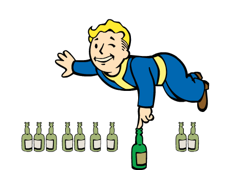 | 100 | Проверить мое качество (Название одного из S.P.E.C.I.A.L.), пока на меня действует (Название алкоголя) | Сегодня Нап предлагает мне проверить, как спиртное повлияет на мои характеристики S.P.E.C.I.A.L. Мне нужно выполнить задание, которое он мне дал, будучи под действием определенного напитка. Что тут может пойти не так? |