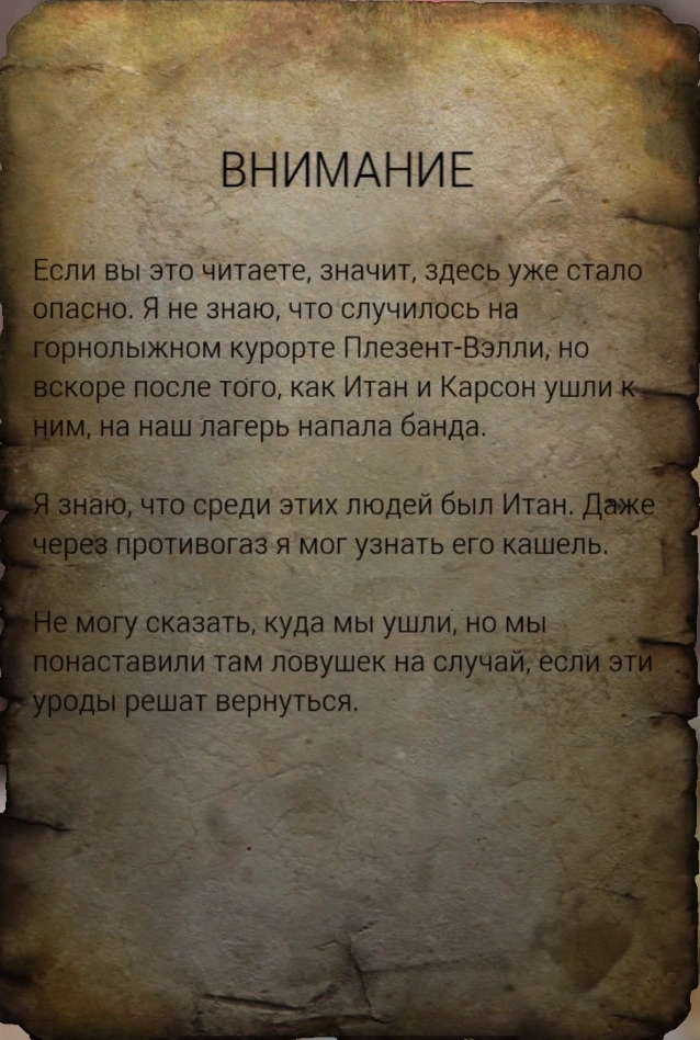 Если вы это читаете, значит, здесь уже стало опасно. Я не знаю, что случилось на горнолыжном курорте Плезент-Вэлли, но вскоре после того, как Итан и Карсон ушли к ним, на наш лагерь напала банда.