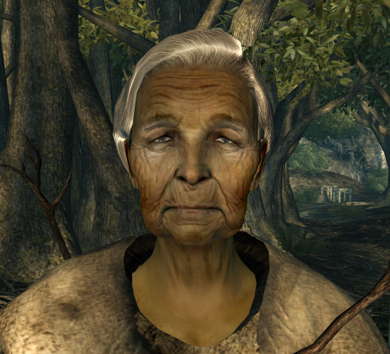 Она является оракулом Оазиса. И хотя изредка случайные посетители могли насмешливо относиться к её гаданиям, эта 60-летняя прорицательница часто поражала других жителей своей силой ясновидения. Она рассказывает вам историю её поиска Оазиса благодаря этому дару. Она обычно находится в своём жилище и занимается алхимическими опытами. Она верна матери-кроне Берёзе[2].