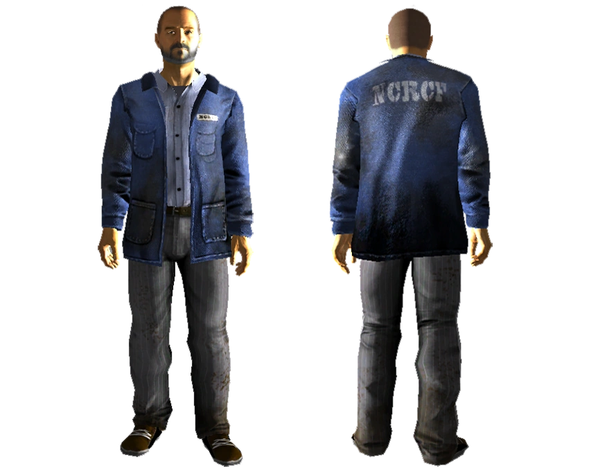 Костюм представляет из себя синюю куртку поверх голубой рубашки, серые брюки и ботинки. Является стандартной одеждой заключенных Исправительного учреждения НКР. На данный момент активно используется подрывниками — преступниками, устроившими бунт в учреждении.