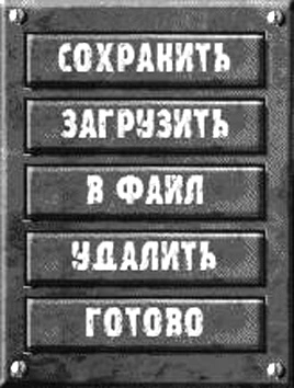 - В ФАЙЛ: Если вы хотите сохранить копию характеристик вашего персонажа в файл, выберите эту функцию. Вас попросят задать имя текстового файла, который будет создан в каталоге игры. Печать в файл не сохраняет персонажа внутри игры. Fallout не может импортировать характеристики из текстового файла.