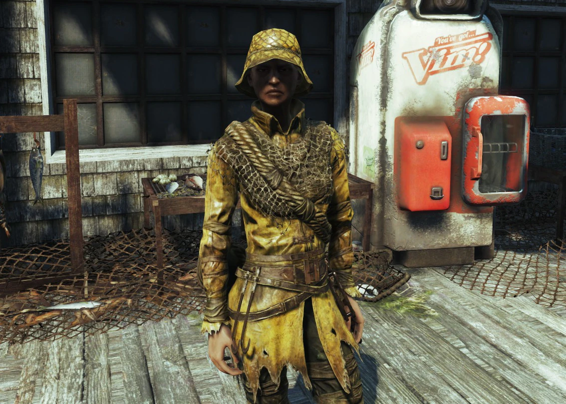 Рыбака, занятого разделкой рыбы, можно найти за зданием Последнего приюта в Фар-Харборе. В диалоге он будет говорить о ловле крупной рыбы. Согласно семейным преданиям, его семья родом из Йоркшира.