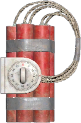 Пять красных цилиндров динамита, скреплённых между собой и обмотанных липкой лентой. От цилиндров идут провода к таймеру, который закреплён сбоку связки. Таймер имеет шкалу времени срабатывания, разделённую на 12 частей, и переключатель, позволяющий выставлять время подрыва связки.