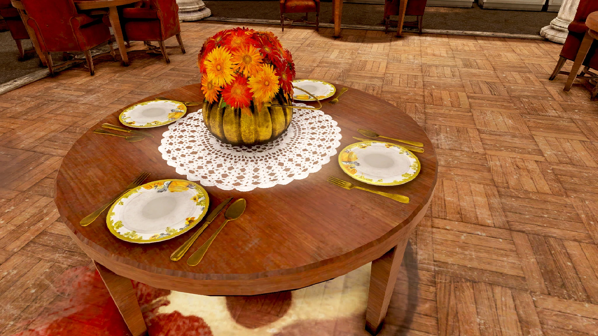 Во время события нужно вернуть к работе роботов-официантов и сервировать столы украшениями и столовыми приборами.