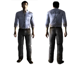 Тёмные брюки и синяя полосатая рубашка с чёрными буквами NCRCF (New California Republic Correction Facility, что означает «Исправительное учреждение НКР») на спине. Является стандартной одеждой заключенных исправительного учреждения, но без синей куртки. На данный момент активно используется подрывниками.