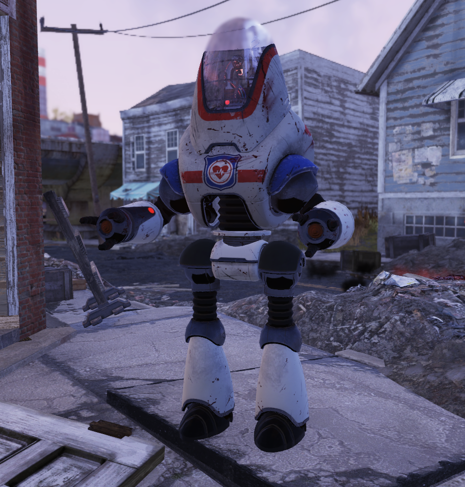 Бывшим до Великой войны стандартным протектроном полицейским закреплённым за Чарлстоном, смог пережить не только бомбардировку в 2077 году, но и устроенный рейдерами Рождественский потоп 2082 года, смывшим и уничтожившим большую часть города, пока примерно после 2086 года не был обнаружен Спасателем Джеффом Накамурой, который доставил робота технику и программисту организации — Санджай Кумару[1].