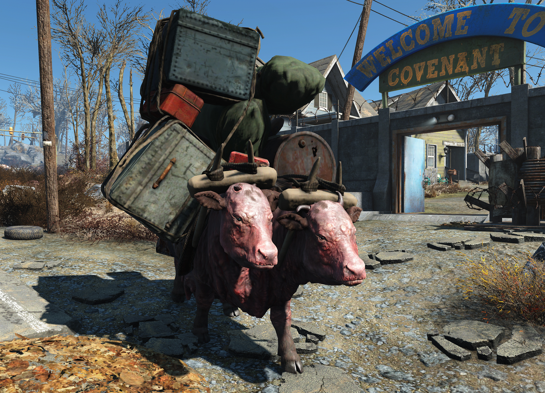Тягловый брамин, странствующий с караваном торговца Лукаса Миллера и двумя охранниками каравана по маршруту: Альянс, Теплица «Гринтоп», Тенпайнс-Блафф, Банкер-Хилл.