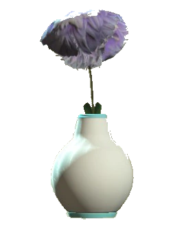 Ваза с живыми цветами из белого матового стекла с сине-зелёным ободком наверху, разновидности отличаются формой. Может быть использована в качестве боеприпаса для хламотрона. Является источником компонентов для модернизации и крафтинга.