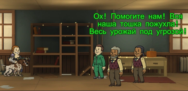 Нет, но мы слышали, что эта беда пришла не только к вам. Знаете других фермеров, у которых тоже пропала тошка? | На старом заводе засела какая-то банда. Поболтайте с ними. |