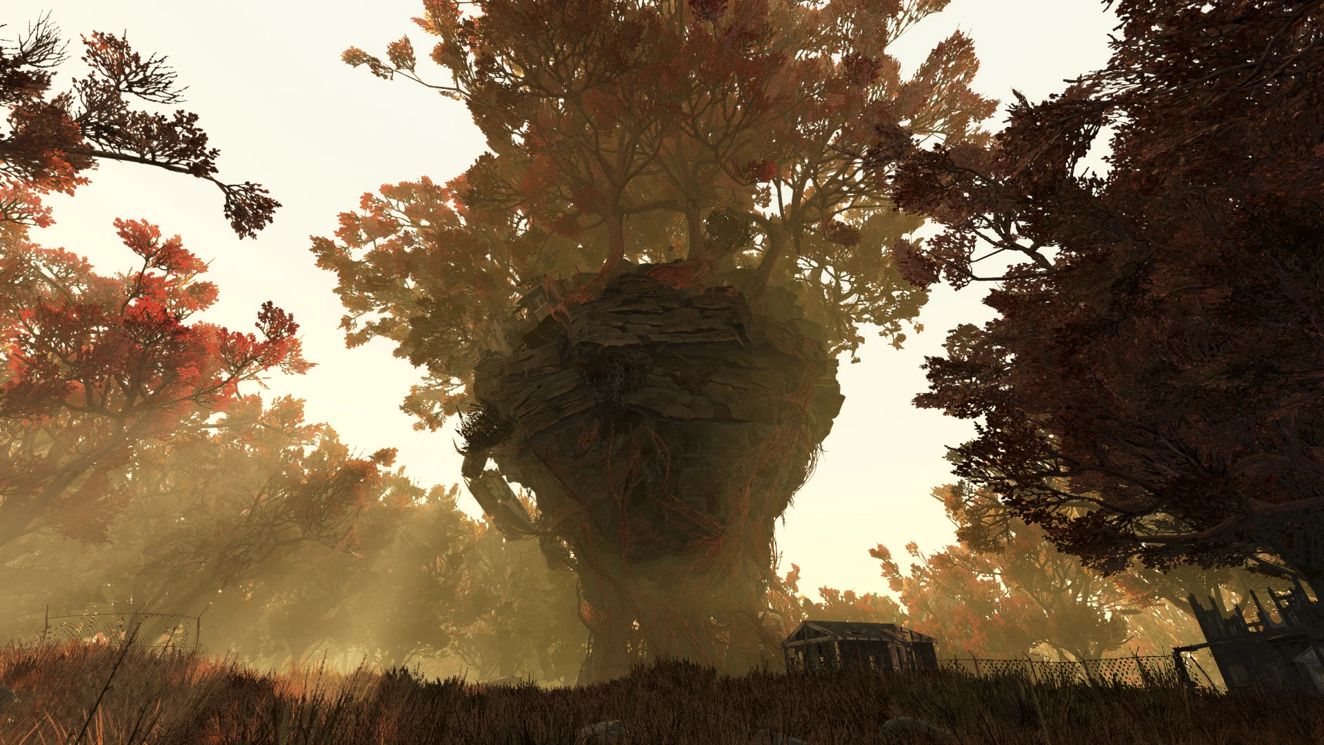 Посредине локации высится гигантское «дерево-остров», вмещающее в себя несколько сотен кубометров грязи и камня, а также остатки нескольких домов и транспорта, которые стояли на земле. Удивительно, но дома и всё, что находится между ними, всё ещё доступно из-за извивающихся лоз душителей, просто требуются умелое восхождение и точные прыжки.