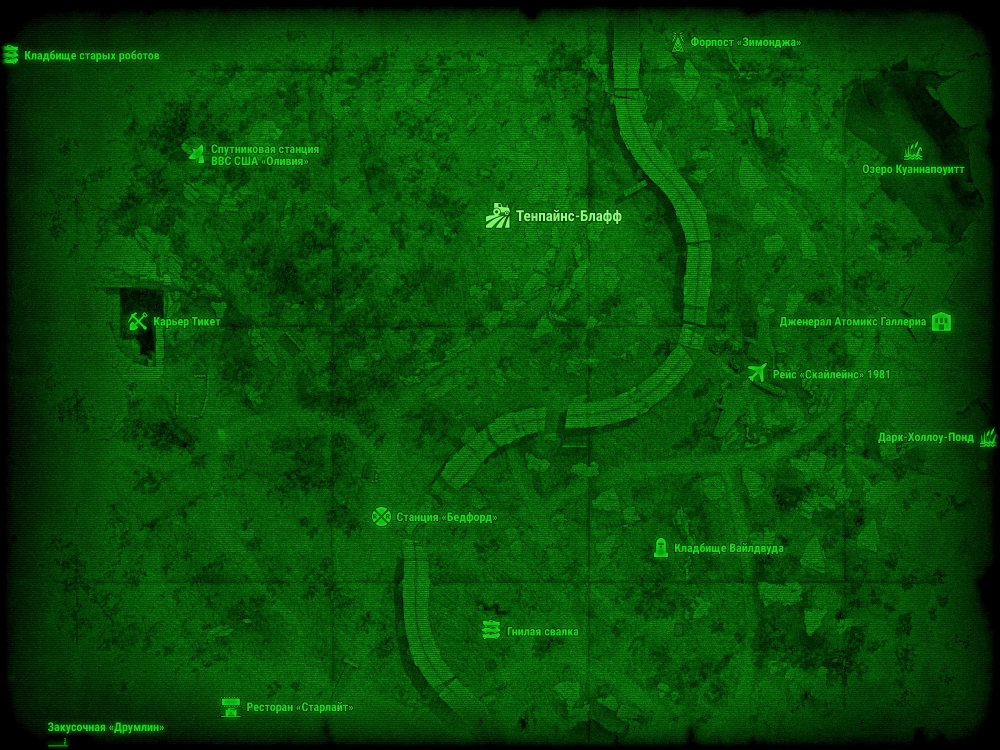 К востоку от фермы за скалистым обрывом на железнодорожной ветке стоит несколько вагонов. В решётчатом вагоне, дверь в который открывается через терминал с паролем средней сложности, находится неполный комплект силовой брони Т-45.