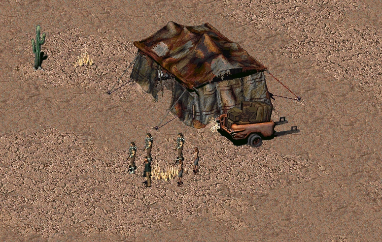 Локация «Торговец и охранники» появляется только в Fallout 2.
