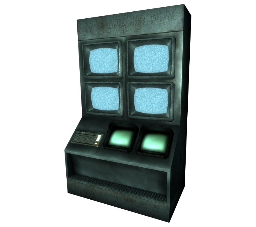 От стандартных терминалов отличается большим стационарным корпусом с четырьмя мониторами наблюдения (верояно) и рабочей панелью с двумя встроенными мониторами и клавиатурой. Предназначен для управления доступом в секретный туннель, соединяющий кабинет смотрителя и выход из убежища. Спуск в туннель, через который Одинокий Путник должен покинуть Убежище 101 в ходе выполнения квеста «Побег!», скрыт под рабочим столом.