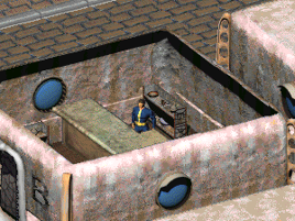 Вы видите гражданина в ярко-голубом комбинезоне, похожем на ваш костюм Убежища, только без номера на спине.Описание в игре
