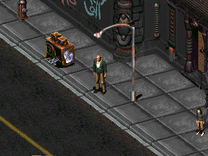 Вы видите сухопарого мужчину в ярко-синей одежде. Мало того, что одежда у него откровенно кричащая, он ещё и сам орёт во всю глотку.Описание в игре
