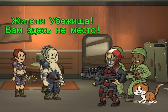 | Жители Убежища! Вам здесь не место! Уходите, пока вы не навлекли на себя наш гнев! |