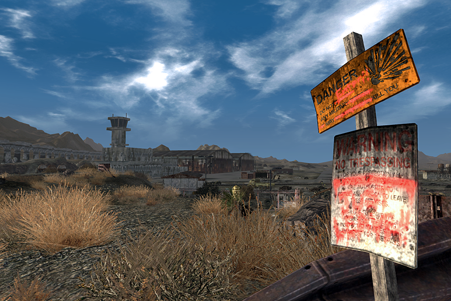Миновав Джорджа, Курьер вплотную подойдёт к предупреждающим табличкам — за ними он будет подвержен обстрелу орудиями авиабазы Неллис. Внимательно изучив записи Джорджа, Курьер может узнать о перерывах в артобстрелах, домах-укрытиях и о железнодорожном тоннеле. Немаловажной информацией будет и то, что около забора обстрел не ведётся.