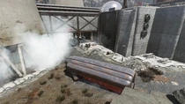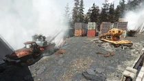 Направляясь на север от предыдущей комнаты, вы найдете дверь, ведущую к погрузочной платформе вдоль западной стены, и еще одну комнату на востоке, вверх по проходу. В комнате, ведущей к погрузочной платформе, есть две станции для силовой брони. Есть шанс, что здесь появится шасси силовой брони с рейдерской силовой броней. Также есть шанс, что на столе рядом со станцией появится случайная схема. В комнату наверху можно попасть с прохода на севере. Она содержит оружейный верстак. Направляясь на север от станций силовой брони, вы обнаружите большую рампу, ведущую на восток в помещение для хранения топлива, а также выход вдоль северной стены. Коридор на севере ведет к двум небольшим комнатам, в одной из которых есть выход на крышу, рядом с красными стальными балками на полу.