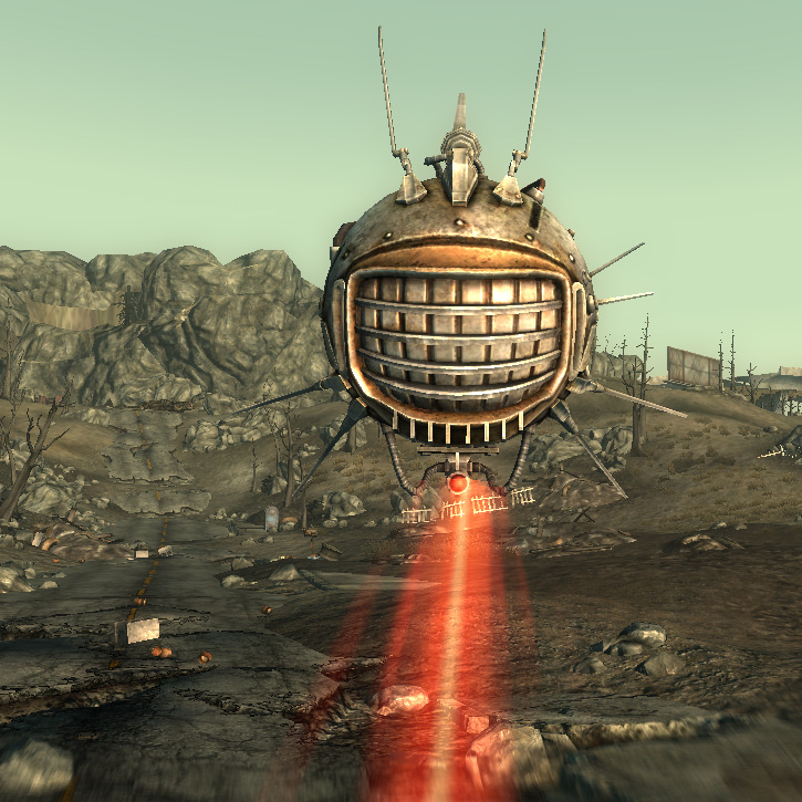 В инвентаре носителя оружие отражается только строкой с названием и характеристиками, файл изображения отсутствует. При использовании рука персонажа держит невидимое оружие так, будто это пистолет. В инвентаре самого робота (или в контейнере) отражается только по консольной команде inv.