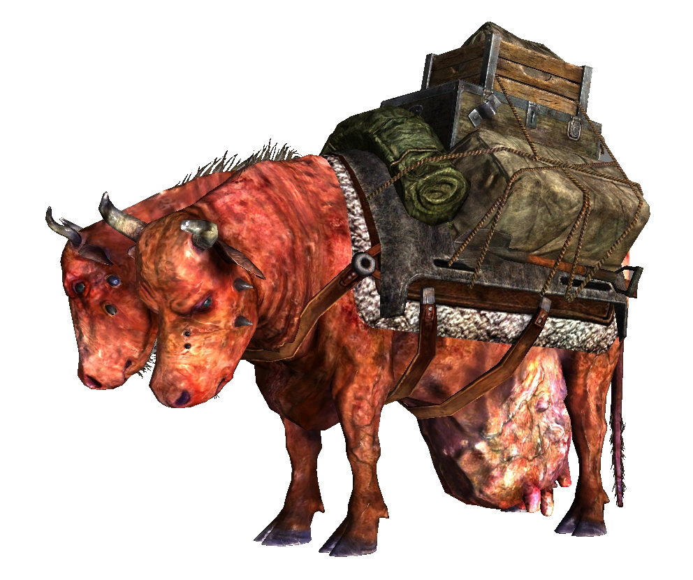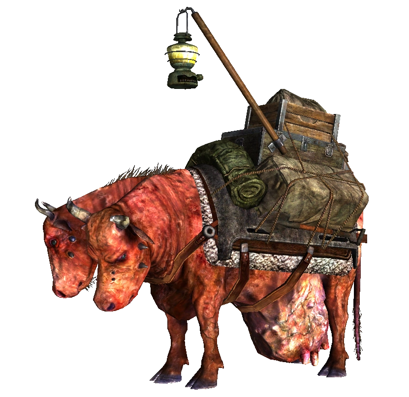 Брамін, якого караванники з громади Кентербері використовують для перевезення своїх товарів (у грі ідентифікуються як в'ючні браміни Ворона, доку Хоффа, Щасливчика Харита і Чокнутого Вольфганга). Крім господаря, брамінів супроводжують охоронці каравану. Виглядають як браміни-водовози, але замість бочок на них навьючены два обгорнутих брезентом скриньки, між якими розміщений скриня (у брамінів Ворона і Харита — з ліхтарем на дерев'яному держаку), позаду якого прив'язана каністра, а зверху — дерев'яний ящик з лежачою всередині зашитим в брезент баулом. На лівому боці брамина додатково закріплений заступ, на правому — 4 підсумки. Від звичайного брамина в'ючний відрізняється великою кількістю очок здоров'я.