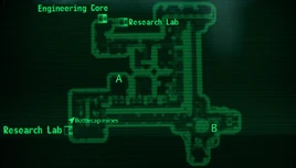 - Вторинного поліетилену «Прибій» — сейфі (точка В на мапі) у зоні утилізації. Щоб відкрити сейф, потрібно зламати термінал Рэйда Андервуда («Наука» 75) (точка А на карті).