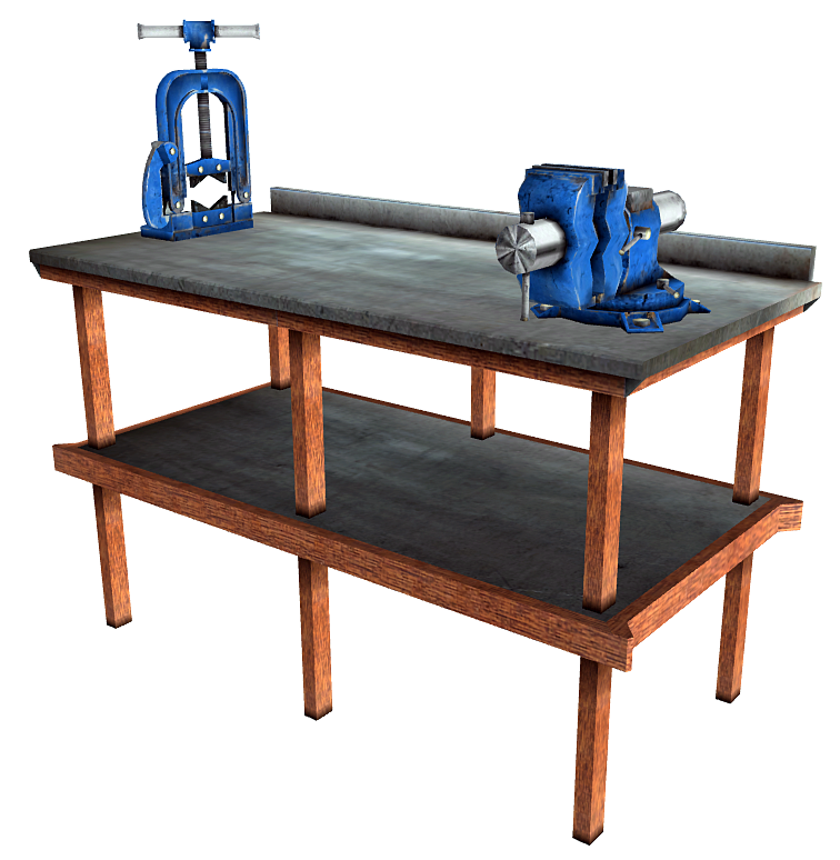 Верстак — це спеціальний верстат, який використовується для створення кришко-хв, рециклінгу палива для вогнемета, електронних зарядів, енергетичних батарей, микроядерных батарей, також використовується для створення посилених енергетичних батарей, ремонтних наборів зброяра, докторських валізок, стимуляторів і суперстимуляторов.