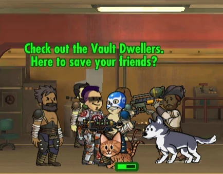 | Дивіться, це ж мешканці Сховища. Прийшли врятувати своїх друзів? Я скажу вам те ж, що і тому мінітмену. Живими ви не підете. |