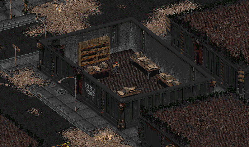 Магазин являє собою квадратну кімнату зі столами і полицями. Весь товар знаходиться у Мітча.