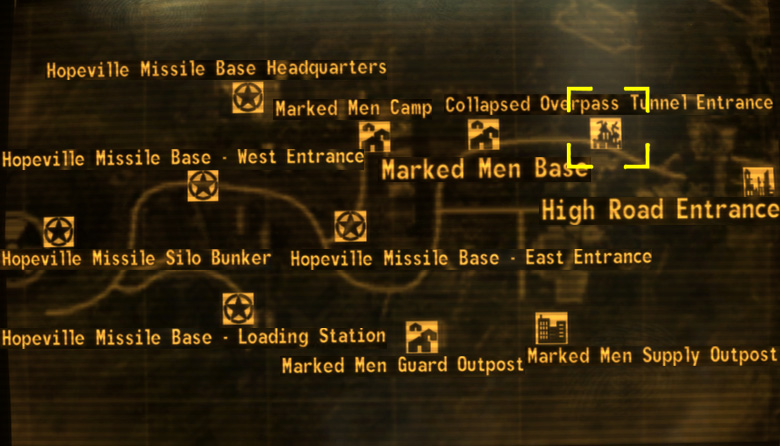 Вхід в обрушений тунель з'являється тільки у доповненні до Fallout: New Vegas — Lonesome Road.