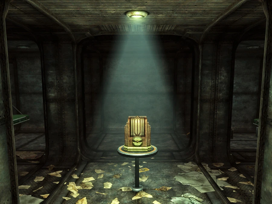 Після входу в бункер необхідно спуститися сходами вниз. Близько металевих дверей з'являється попередження про те, що зараз почнеться доповнення Dead Money. Після прийняття пропозиції двері відчиняються.