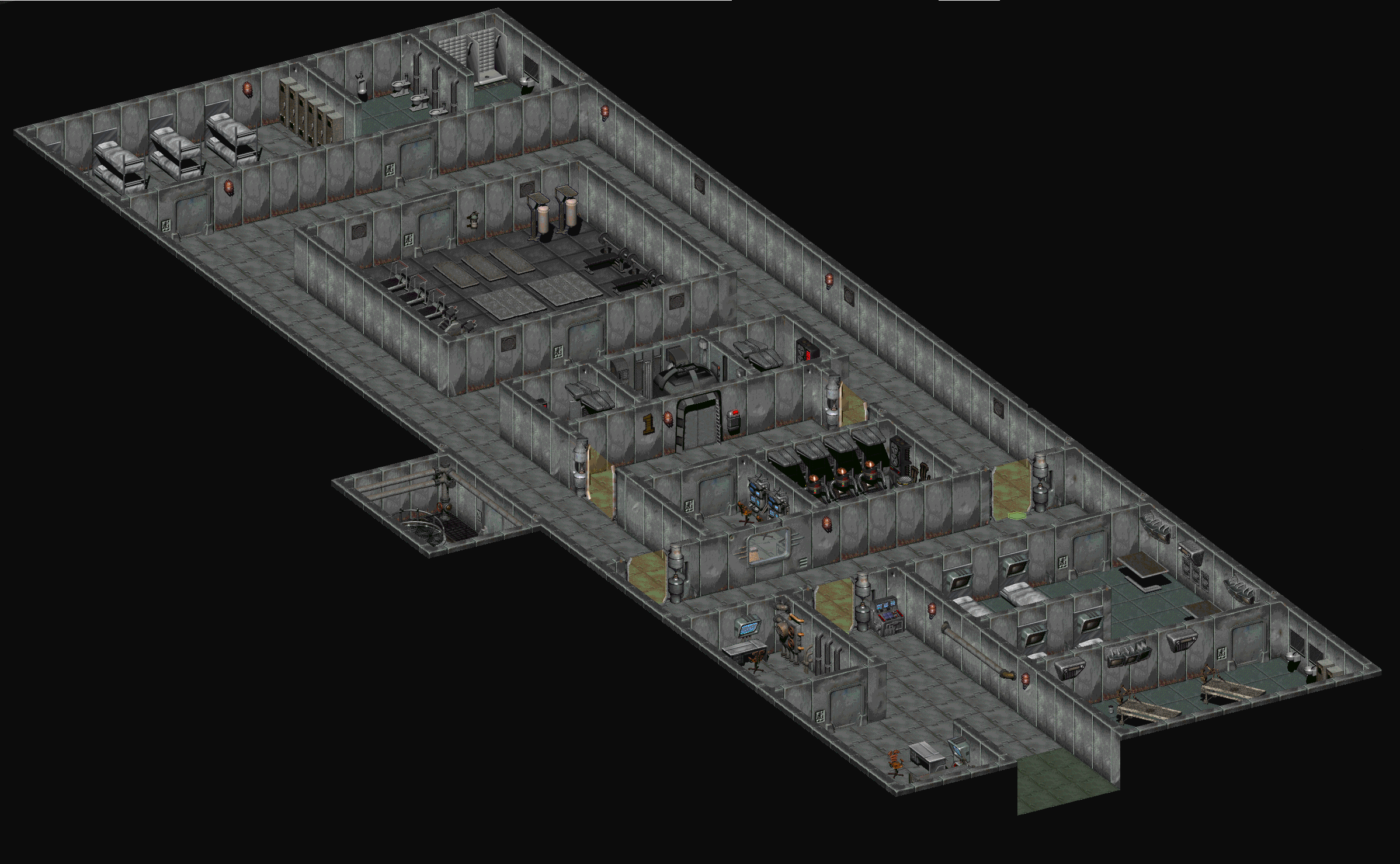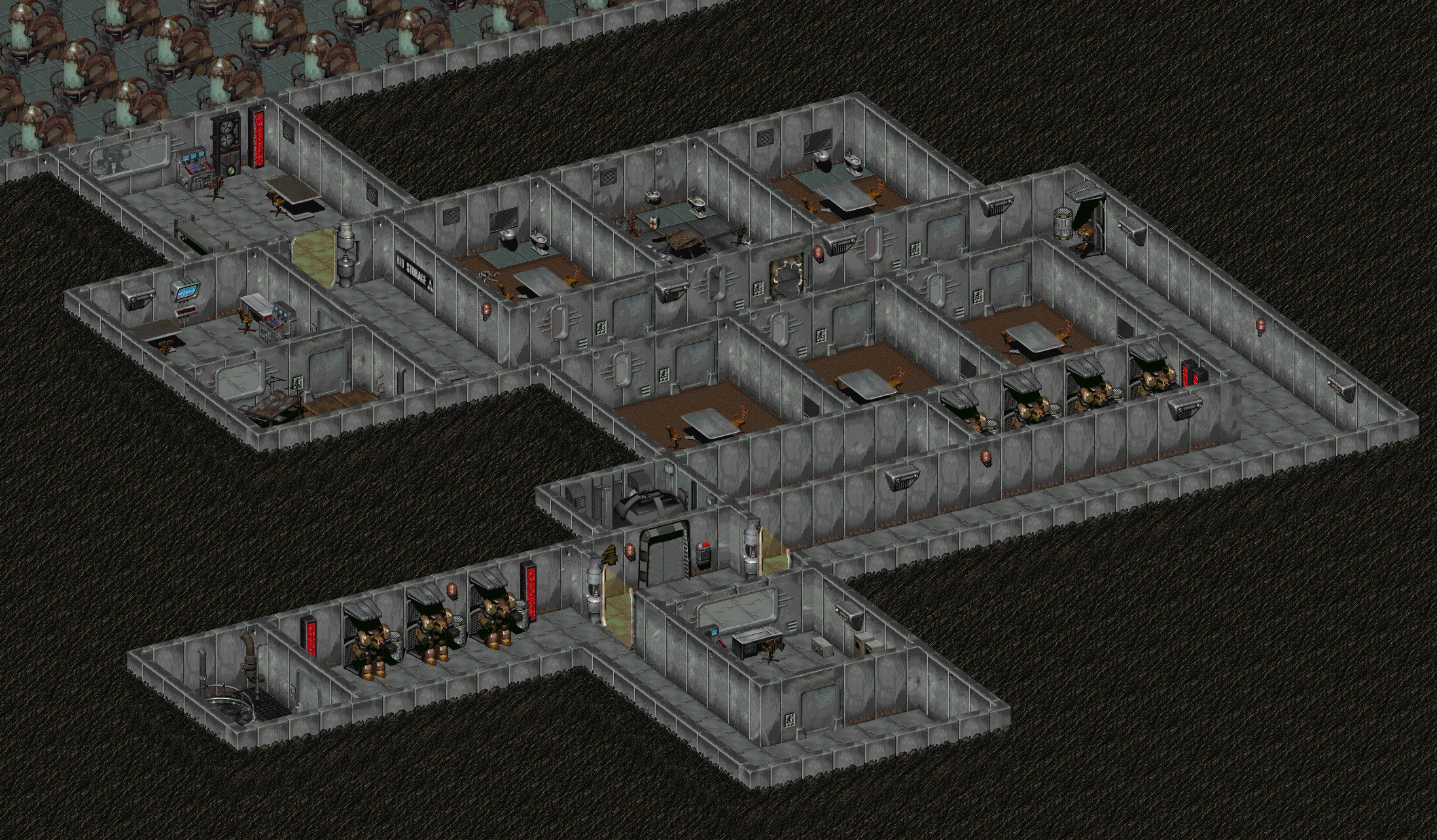 Обраним слід йти до північно-східної кімнаті і по шляху, бажано, заглядати в маленькі кімнати, щоб знайти кілька упаковок баффаут, психо, ментатов і стимуляторів. Підійшовши до комп'ютера поряд з приміщенням, у якому знаходяться зелені контейнери, йому краще перевірити навичка «Наука». Треба, щоб він був не менше 121 %. Якщо менше, то вирішенням проблеми буде здатність «Приз!»[2]. Далі, через термінал і за допомогою необхідних деталей, Обраному зібрати корпус для Скайнет. При вдалій збірці штучний інтелект Скайнета переміститься в корпус робомозга й знайде мобільність. Після цього база буде досліджено повністю.