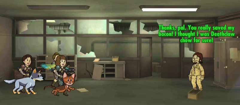 | Наступна інформація заснована на даних Fallout Shelter і деякі деталі можуть конфліктувати з основним каноном. |