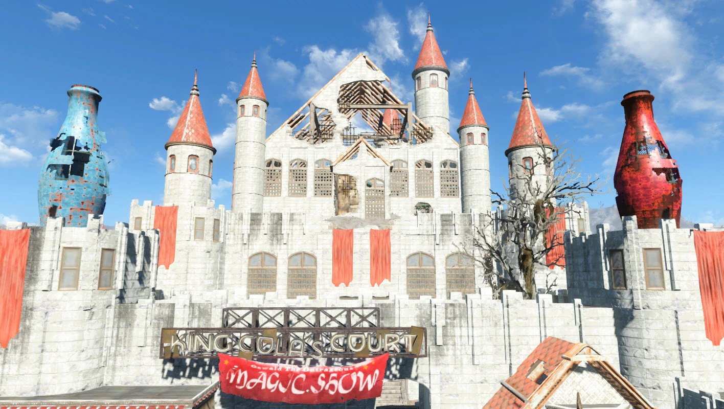 Порядком старий театр довоєнний, ліворуч від головного входу — туалети, трохи правіше стійки з касами вхід до глядацької зали. У глядацькому залі напівзруйновані ряди сидінь, колишніх колись червоними і м'якими; сцена освітлена прожектором, саме в цьому промені світла з'являється і зникає Освальд Шокуючий. Якщо пройти за сцену можна побачити 2 гримерки, а якщо піднятися нагору по хисткій драбині і вийти на сцену, то можна посидіти на троні Ядер-Короля. При подальшому просуванні коридор виводить у вузьку кімнатку з освітлювальним пультом. З-за куліс на ліфті можна піднятися на дах замку.