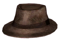 Коричневих відтінків довоєнна капелюх, нагадує «федору». Володіє мінімальною захистом (1 СУ і 0 ПУ), але збільшує на одиницю «Сприйняття» носить.