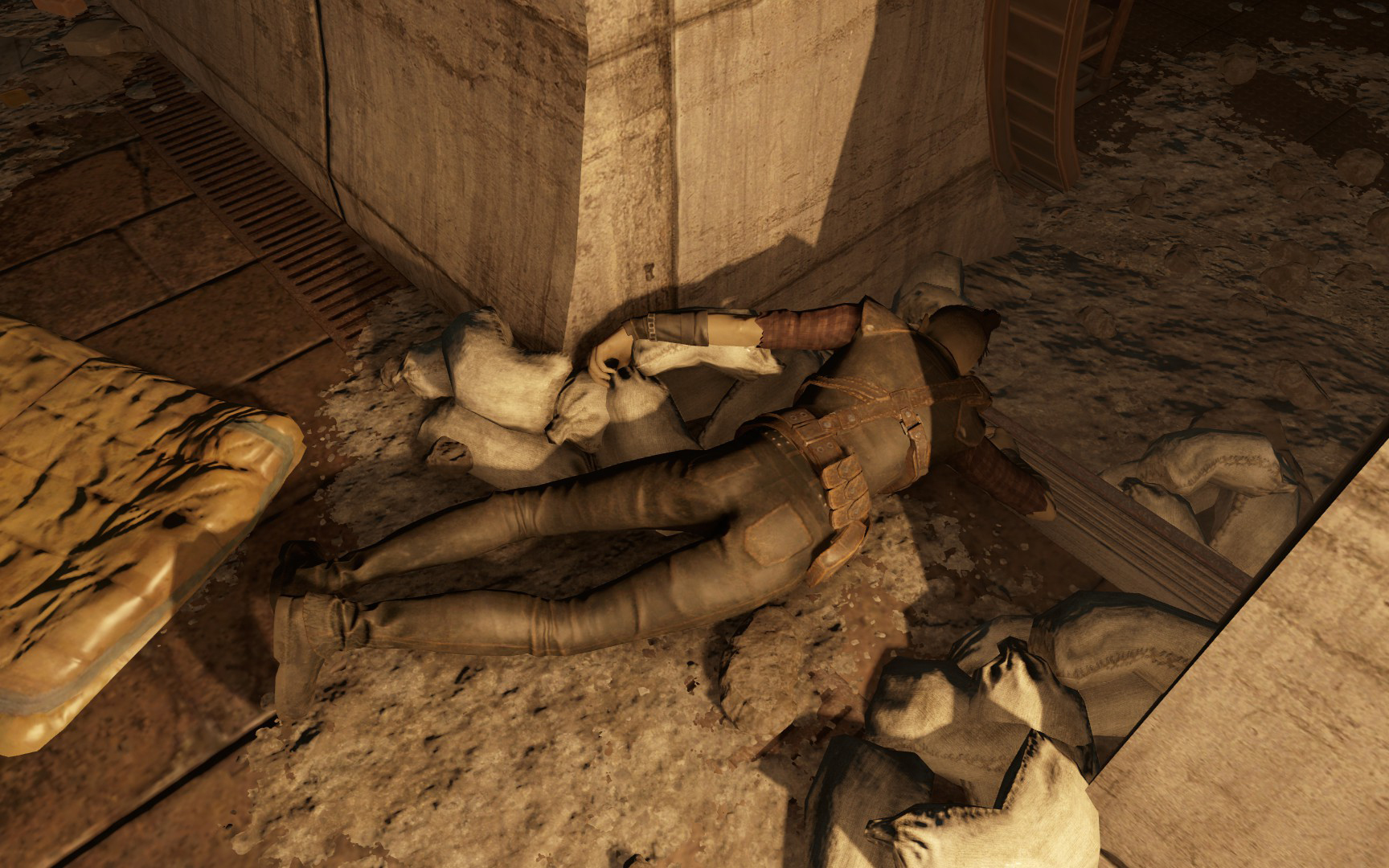 - ↑ Ім'я було вирізано з гри. При взаємодії називається труп.