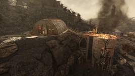 - ↑ Atlas of Appalachia – The Ash Heap: Zone B: 28. ABANDONED MINE SHAFT 3. North of the mansion towers, on lower ash-filled slopes close to Lewisburg, is another sealed mine shaft. Access the platform to this huge vat-sized cylinder (with a precarious drop to avoid!) via a gantry from a curved-roof maintenance shed.