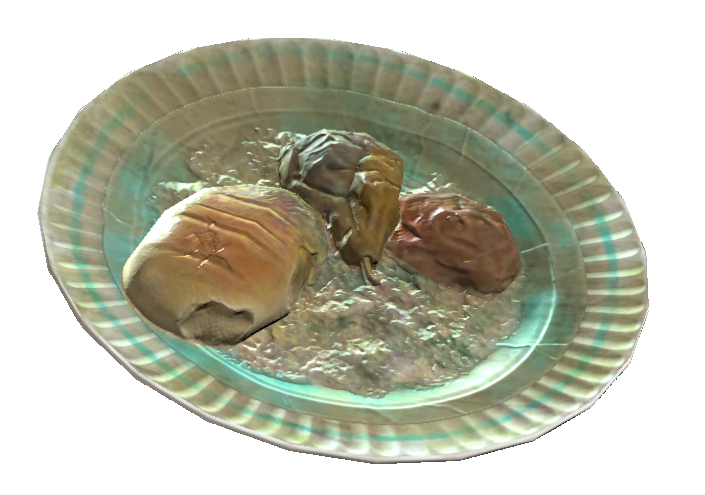 Являє собою тарілку з заплесневевшим хлібом, грушею і червоним фруктом. Невідомо, скільки вона пролежала, але явно не рекомендується до вживання.