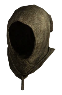 Капюшон зовні не відрізняється від капюшона древена (але не може бути відремонтовано), теж зшитий з грубої тканини, повністю закриває шию і зав'язується спереду на шнурок, продеваемый в петлю.