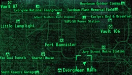 - Караванники (Ворон, Док Хофф, Щасливчик Харрит і Чокнутий Вольфганг) проходять це місце, рухаючись по дорозі між Евергрін-Міллс і Мегатонної.
