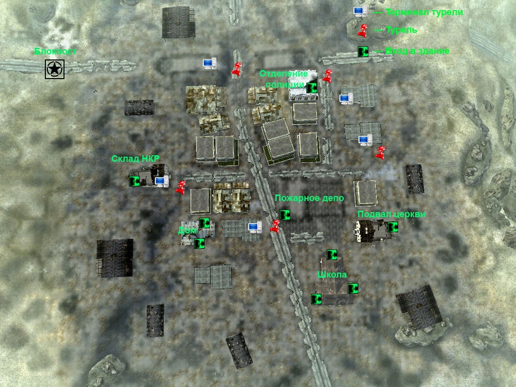 Знищивши трьох гулей-бійців всередині поліцейської дільниці, переробленого НКР в центр зв'язку, Кур'єру потрібно приступити до пошуків цінностей. Праворуч від входу, в одній з камер ув'язнення, на підлозі перед ліжком, він знайде «9-мм пістолет-кулемет НКР». В центральній кімнаті з великою кількістю терміналів — «10-мм пістолет НКР» на одному із столів. Тут же, в різних столах, ще дві «частини комп'ютера НКР» і дві «частини радіоприймача НКР». В суміжному складському приміщенні — три «осколкових гранат НКР» на стелажі та «40-мм гранатомет НКР» на дерев'яному ящику.