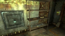| Сховище 87 | На 2-му рівні житлових приміщень, в кімнаті, замкненою на середній замок, на стелажі праворуч від сейфа. |