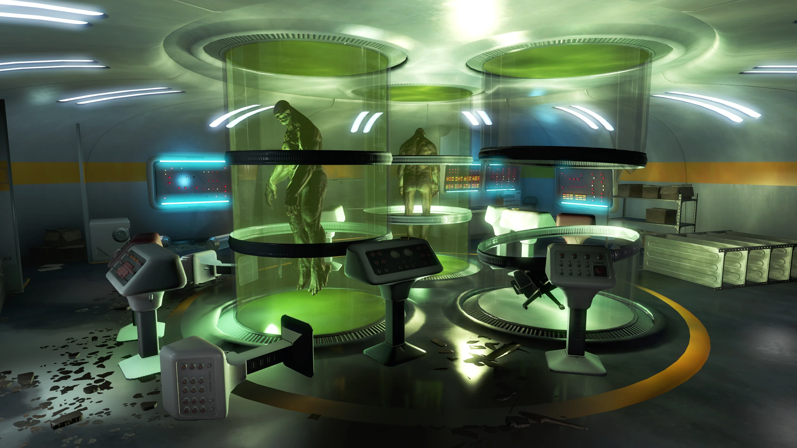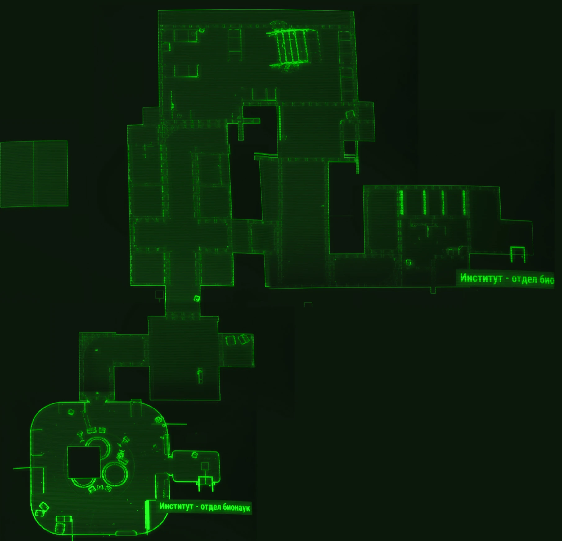 Наступне приміщення являє собою велику круглу кімнату з трьома колбами-інкубаторами, у двох з яких знаходяться в сплячому стані супермутанты, а одна порожня. На одному зі столів знаходиться пристрій, в якому лежить колба з експериментальної сироваткою. На одному зі столів варто інститутський термінал з записами про дослідження.