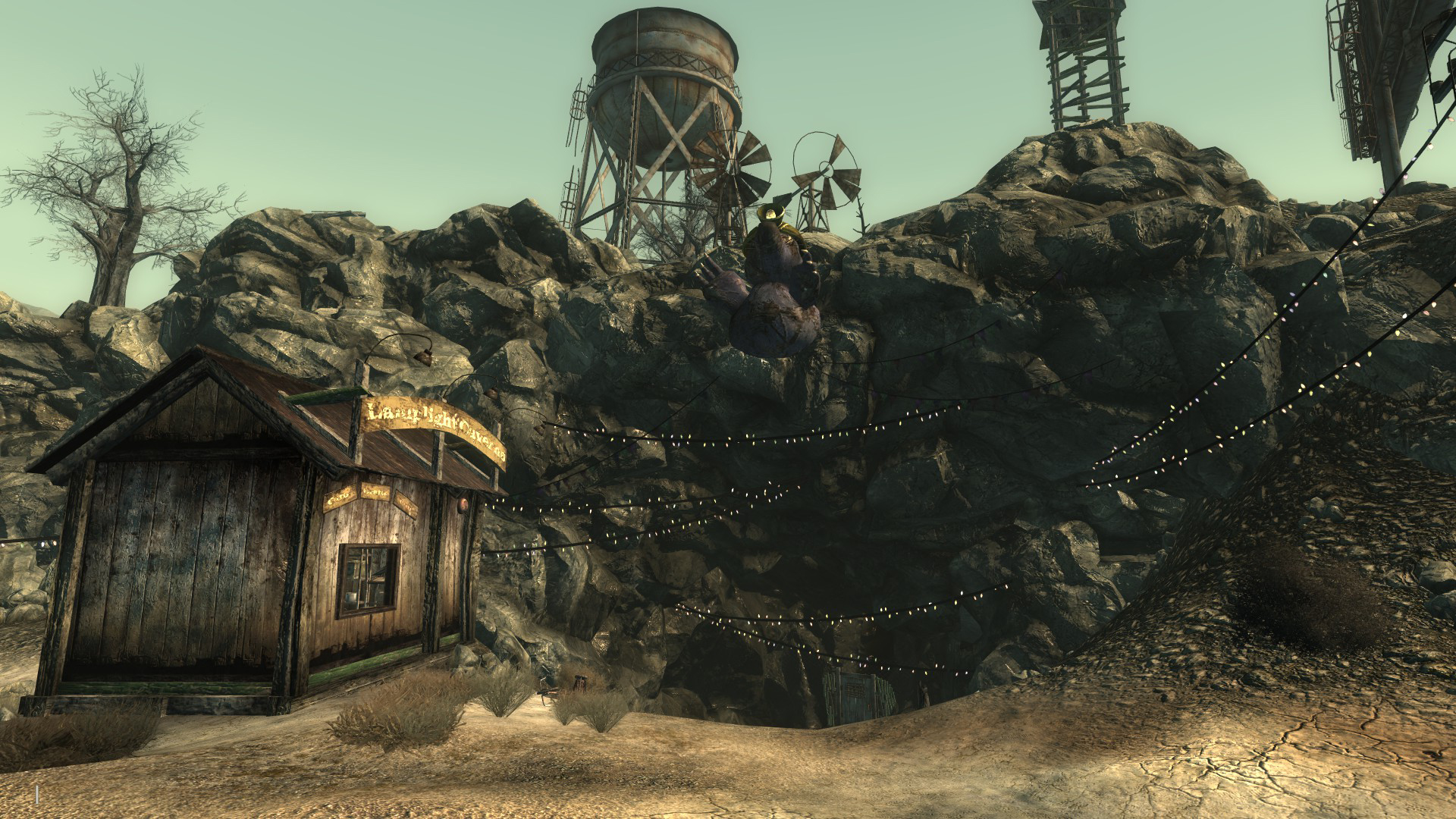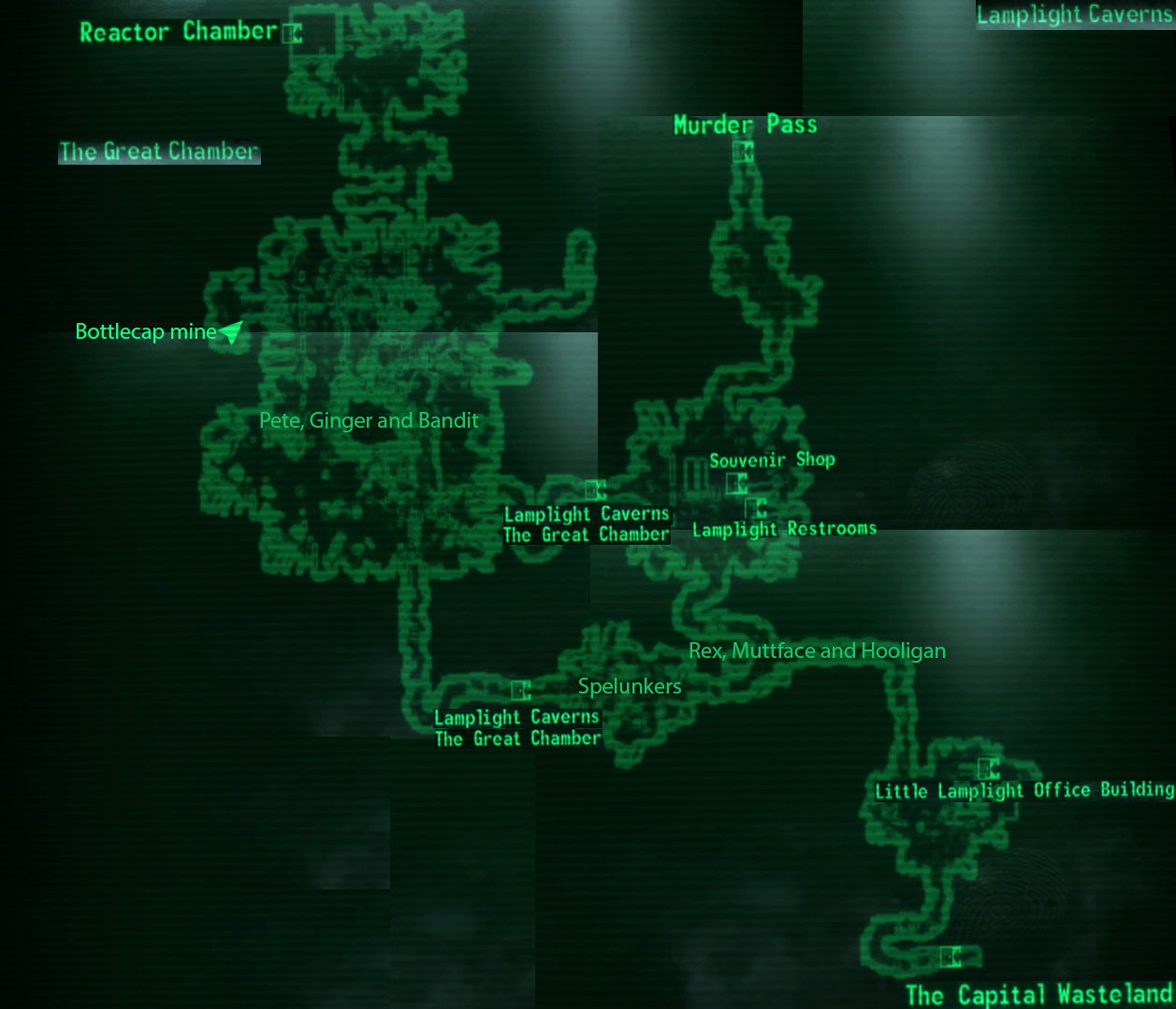 - таємній квартирі рейнджерів НКР на задній стороні будівлі в печері є вивіска «"Lamplight Caverns"», дістатися до якої можна тільки за допомогою консольних команд.