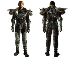 - При встановленому додатку Broken Steel в ході виконання квесту «Захищаючи каравани» броню можна побачити на Одноглазом Джека та підручних.