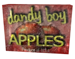 Наливні яблука — продукт довоєнної компанії «Dandy Boy». Продукт упакований в червоний картонний коробок з написом жовтими літерами: «dandy boy APPLES». Внизу є ще маркування: «Produce of U. S. A.»