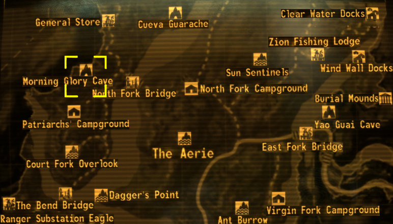 Печера Морнінґ-Глорі з'являється тільки у доповненні до Fallout: New Vegas — Honest Hearts.