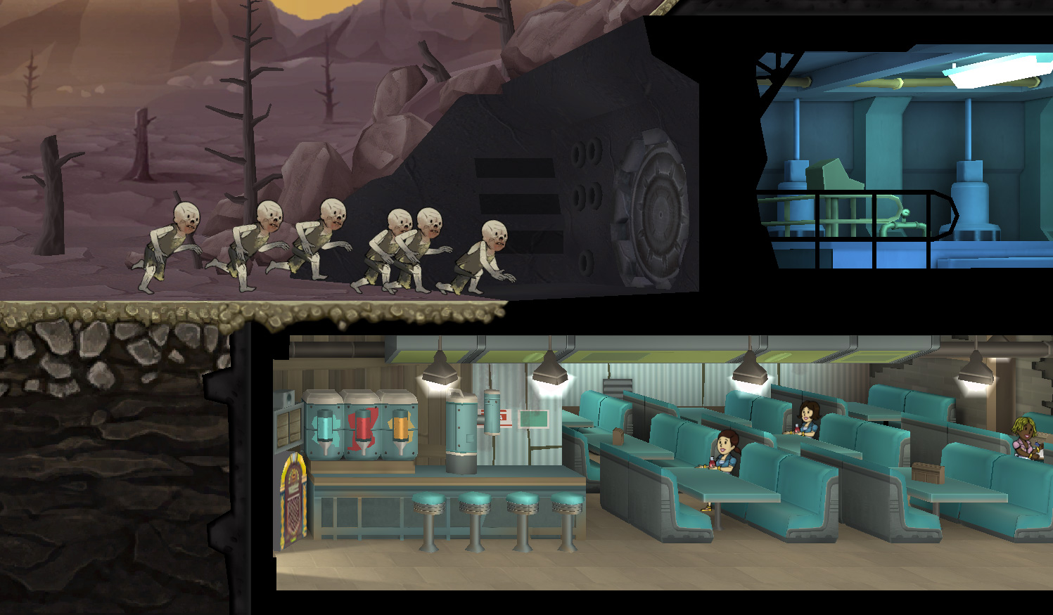 - Під час події індикатори ресурсів у верхній частині екрана починають блимати червоним кольором, а ресурси починають зменшуватися. Які саме ресурси зменшуються, залежить від рівня розвитку Сховища та виду події. Наприклад, при нападі кротощурів зменшується енергія, а при нападі радтарганів та пожежі ресурси не зменшуються.