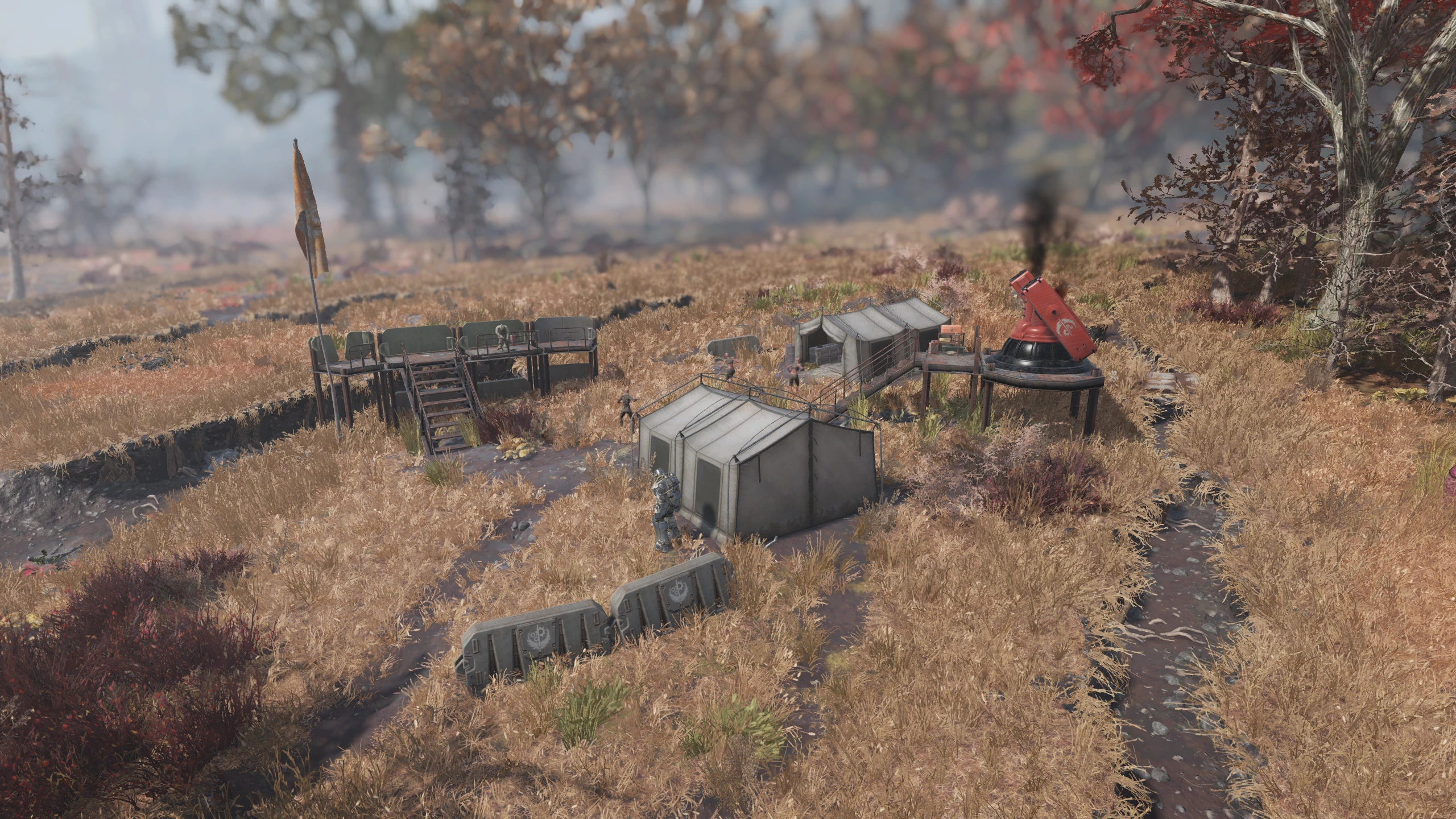 | « | Якщо ви плануєте створити C.A.M.P. поблизу і потребуєте додаткової вогневої потужності, відремонтуйте автоматичну ракетну турель класу "земля-повітря" на цій невеликій позиції з наметами. В іншому разі, приходьте сюди за мотлохом (і силовою бронею). | » |
