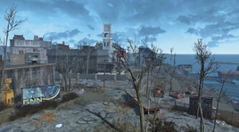 - Магазин одягу. Двоповерхова будівля магазину, де багато довоєнної одягу, частину з якої вже вкрадено[2]. Під галереєю магазину є термінал і турель яку необхідно буде активувати в квесті Ліквідація. На другому поверсі в кінці галереї є коробка з боєприпасами і сумка зі зброєю.