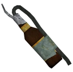 Виглядає як інгалятор, зібраний з порожньої пляшки від Сансет Сарсапарілли, зробленого з фольги нагрівального елемента і шланга.